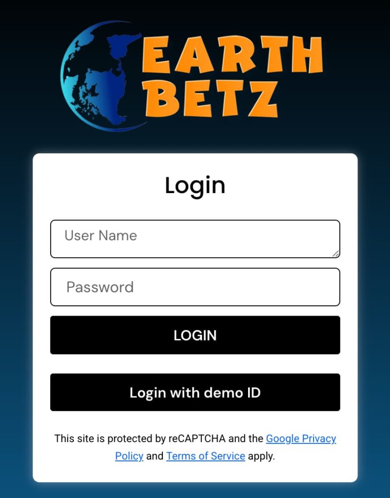 - If you are a new user, you can create a new account by registering yourself using your Earthbetz ID.